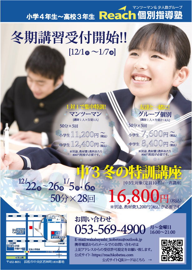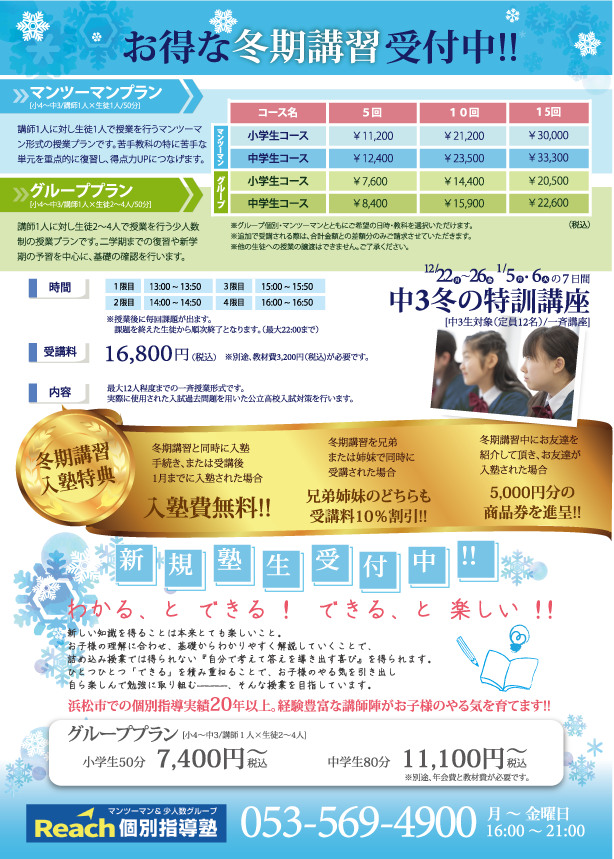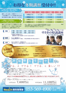Reach個別指導塾では、ただ今、2025年度冬期講習のお申し込みを受付中です